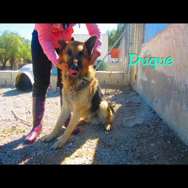 Duque lebte auf einem Gelände und wurde von einem Paar versorgt. Als das Paar sich trennte und der Hund sich selber überlassen war, riss er aus und fand Unterschlupf bei einer Frau. Diese kannte
