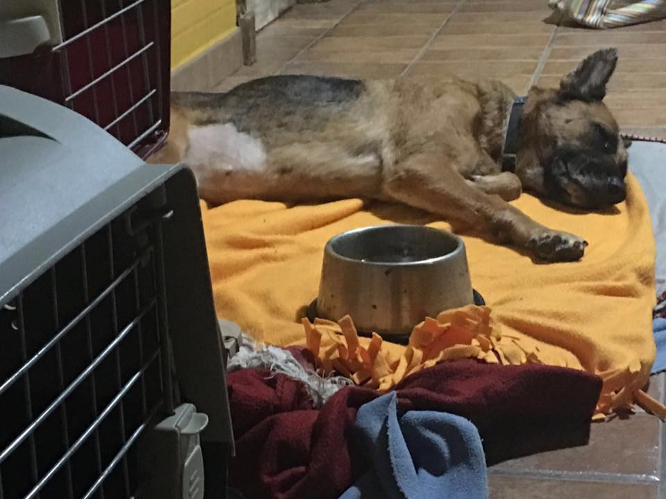 Pastori ist eine wundervolle und liebe Hündin. Sie merkt, dass sie jetzt in Sicherheit ist und die Menschen um sie herum ihr helfen wollen. Die anderen Hunde haben sie freundlich begrüsst und