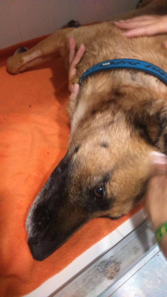 Die liebe Hündin wurde ausgesetzt und vermutlich von einem Auto angefahren. Als Tierschützer sie fanden, war sie in einem sehr kritischen Zustand. Sie wurde sofort zum Tierarzt gebracht und der